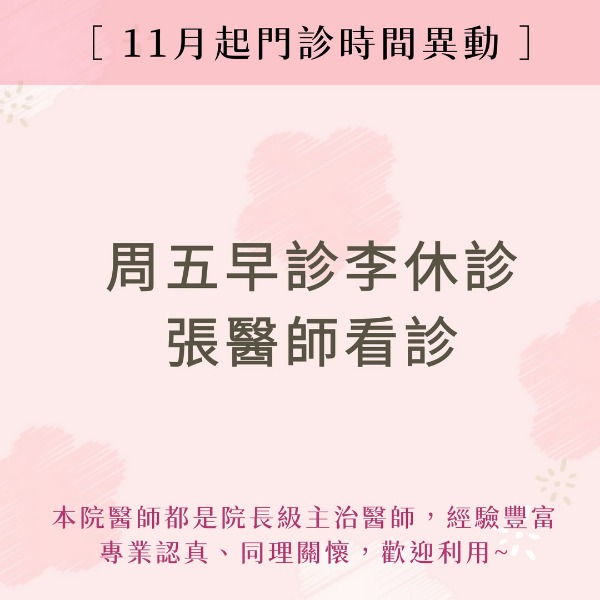 11月起門診時間異動